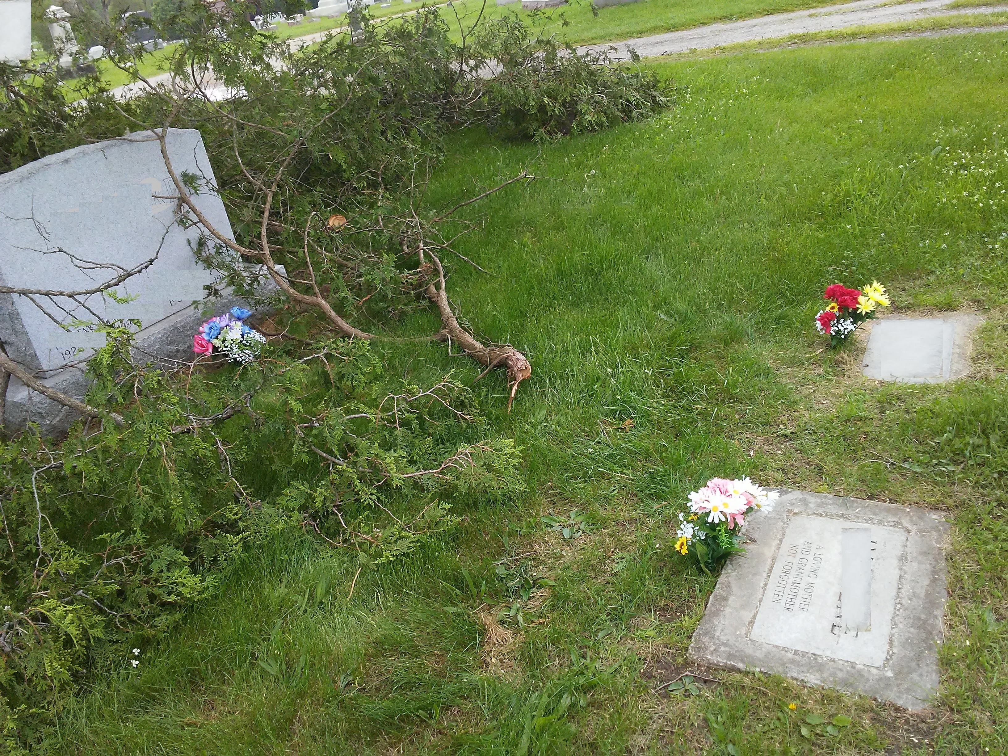 I so do not want to leave her out of this reunion/reconnection story. So, the day after Memorial Day I journeyed north, by myself this time, to visit the cemetery where my birth mother, her parents, and her brother are buried. At this point in time, my only opportunity to include her is found at her final resting place. I toted flowers to decorate the graves because that’s what we do. But the quiet moments of reflection I anticipated met a huge pile of downed tree branches. In what appeared to be extremely poor planning on the part of the caretakers, the cemetery was littered with piles of branches trimmed from the trees. I wanted to complain about what felt like a lack of respect for the deceased and their families, especially on this particular weekend, but who would I say I was to the H. family?